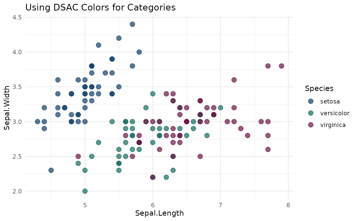 labs(title = "Using DSAC Colors for Categories")